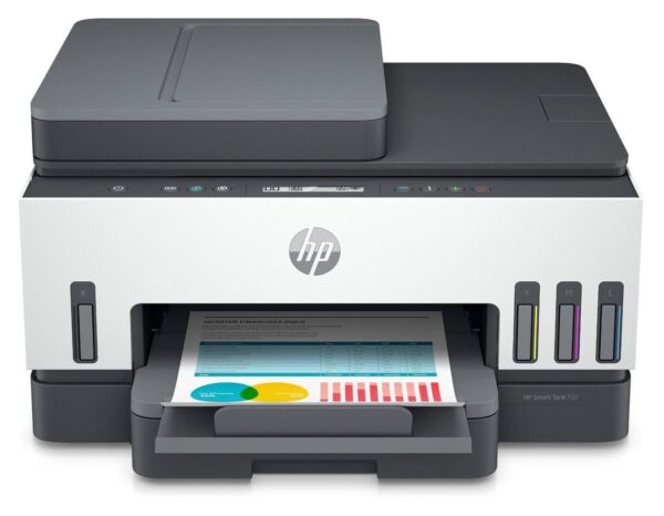 La HP Smart Tank 750 es una impresora color multifuncional que ofrece conectividad inalámbrica a través de WiFi. Cuenta con un sistema de tanque de tinta de alta capacidad que permite un gran volumen de impresiones a un bajo costo por página, lo que la hace ideal tanto para entornos domésticos como de oficinas pequeñas. La impresora admite funciones de impresión, escaneo y copia e incluye funciones como impresión automática a doble cara (para imprimir en ambas caras del papel) y un alimentador automático de documentos (ADF) que mejora su eficiencia para documentos de varias páginas. Entre sus opciones de conectividad también se incluye USB, potenciando su versatilidad.